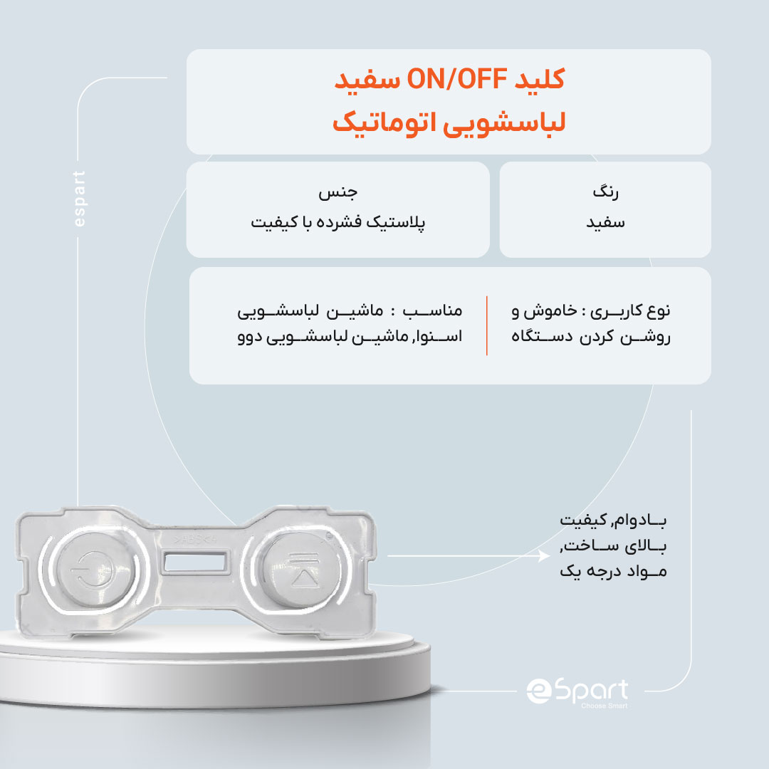 فروشگاه اسپارت استور با عرضه کلید ON/OFF سفید اتوماتیک، تضمین اصالت کالا، قیمت رقابتی، و مشاوره تخصصی را به مشتریان ارائه میدهد. این مرکز پخش قطعات یدکی ماشین لباسشویی و قطعات مکانیکی ماشین لباسشویی، مرجعی مطمئن برای تعمیرکاران و مصرفکنندگان خانگی است که به دنبال خرید لوازم جانبی ماشین لباسشویی با ضریب اطمینان بالا هستند. خدمات پس از فروش و پشتیبانی استاندارد اسپارت استور، دغدغه کاربران را در تأمین قطعات یدکی معتبر برطرف میکند و پشتیبانی کارشناسان این مجموعه، تجربه خرید آسان و مطمئن را تضمین میکند.