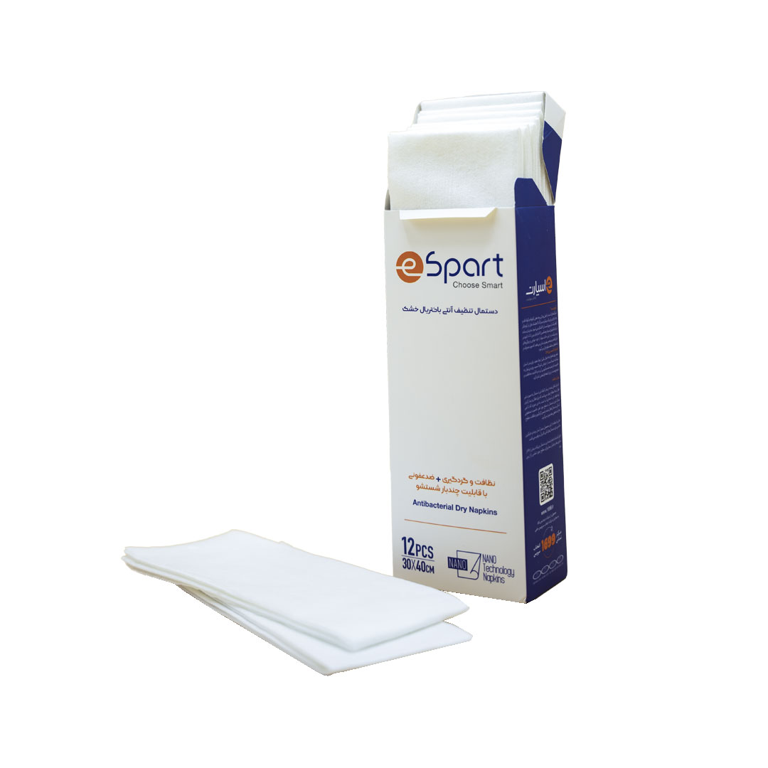 دستمال نانو اسپارت یک بسته 12 عددی با ابعاد 30 در 40 سانتی متر و قابل شستشو با رایحه معطر برای خوشبو کردن فضا است. نانو ذرات قفل شده در میان الیاف این دستمال به صورت غیرفعال یا اصطلاحا خواب هستند و برای فعال کردن آن ها فقط به مقدار کمی رطوبت احتیاج دارید. برای استفاده از دستمال نانو اسپارت کافی است دستمال یا سطح مورد نظر را کمی نمناک کنید تا خاصیت آنتی باکتریال آن فعال شده و ضمن گردگیری و نظافت، تمامی سطوح را بدون استفاده از مواد شوینده ضد عفونی کنید. پس از تمیزکردن سطوح با دستمال آنتی باکتریال اسپارت، بیش از 99 درصد میکروب ها و عوامل بیماری زا از بین می رود و پوششی آنتی استاتیک روی سطح ایجاد می شود که مانع جذب گرد و غبار و آلودگی خواهد شد. برای پاک کردن لکه های قوی چربی و آلودگی ها روی سطوحی همچون اجاق گاز، هود و فر، استفاده از این دستمال به همراه پاک کننده اجاق گاز اسپارت پیشنهاد می شود. دستمال نانو اسپارت مورد تایید معتبرترین سازمان ها نظیر ستاد فناوری ویژه نانو، واحد بازرسی و بررسی مواد و محصولات نانو و کمیته فناوری نانو سازمان غذا و دارو است.