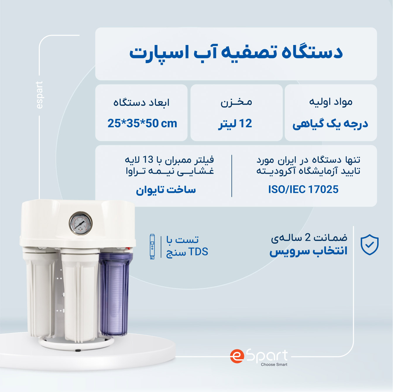 دستگاه تصفیه آب اسپارت پس از گذراندن کنترلهای کیفی دقیق، با گارانتی دوساله به بازار عرضه میشود. این گارانتی تنها در صورتی به شما ارائه میشود که نصب، تعمیر و سرویس دستگاه توسط تکنسینهای مجاز انتخاب سرویس انجام شود. خدمات پس از فروش اسپارت تضمین میکند که دستگاه بهطور صحیح و بهینه عمل کرده و مشکلی در عملکرد آن وجود نخواهد داشت.